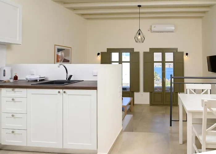 Det finns matplats och utomhusmatplats, tillsammans med vattenkokare, kylskåp och köksredskap. Gästerna kan besöka To Limani tis Kyra Katinas, som ligger ungefär 5 minuter bort till fots.